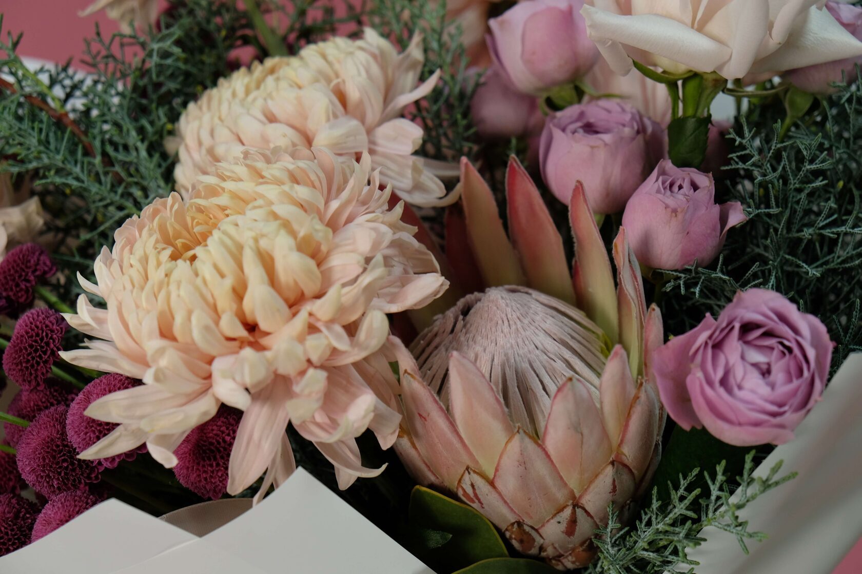 - Дни рождения сотрудников: Для поздравления с днем рождения часто выбирают более персонализированные букеты. Здесь важно учитывать предпочтения коллеги. Если вы знаете, какие цветы ей нравятся, – смело выбирайте. Если нет – розы, лилии, хризантемы, альстромерии станут беспроигрышным вариантом. При этом стоит избегать слишком вычурных и ароматных цветов, чтобы не вызывать дискомфорт у других сотрудников.